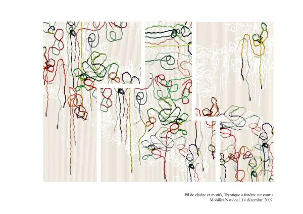 Le 16 décembre 2009, la commission des acquisitions a retenu un projet de paravent baptisé Fenêtre sur cour, proposé par Frédéric Ruyant et Monique Frydman. Le premier a travaillé sur la structure métallique et la seconde sur la garniture. Cette dernière n'est pas conçue en tapisserie traditionnelle. Elle est composée de fils de chaîne en polyester argenté sur lesquels sont tissés des fils de soie blanche d'Alger, laissant souvent apparaître la chaîne. Le cadre a une double structure et comporte donc deux faces à tisser. Grâce à la transparence des fils de chaîne nus, le dessin du verso est visible au recto, offrant une double vocation voulue par les artistes : "Il cache et il révèle".