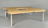Table de réunion en quatre parties : deux plateaux gainés cuir, deux plateaux plaqués sycomore.