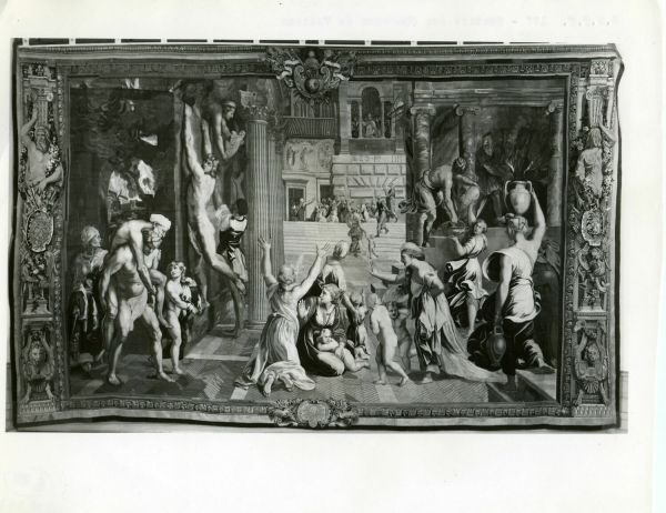 En 1923 au Mobilier national. Classée au titre des Monuments historiques le 20 janvier 1923, avec quarante et une autres pièces des différents tissages de la tenture des Chambres du Vatican, d'après Raphaël (GMTT 173 à 182) (PM75002424). Entre 1960 et 2002 dans la chapelle de la manufacture des Gobelins.